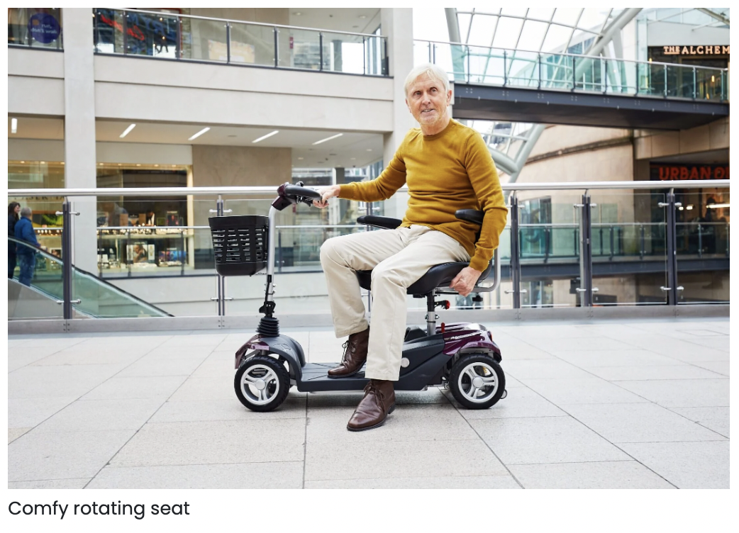 The Motion Healthcare Airium is a lightweight pavement scooter, featuring Lithium battery technology and a lightweight Aluminium chassis.