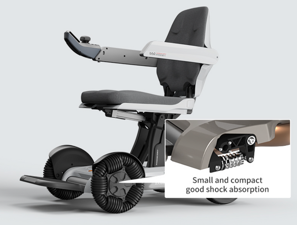 No manual effort required—this powerchair folds and unfolds automatically for seamless usability. - Advanced Dual Suspension System